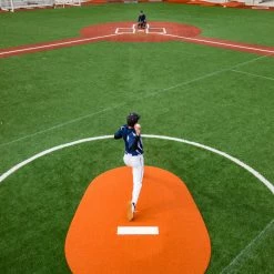 Portolite builds the lightest, most durable baseball pitching mounds on the market. Portolite pitching mounds give the pitcher the feel of a regulation baseball mound, while also allowing field crews the ability to move it with ease. Each baseball pitching mound is designed with a full-body, high-performance poly-protected resilient core with fiberglass reinforcement for a solid, no bounce, yet cushioned mound that reduces knee and ankle strain. Portolite pitching mounds are covered with the highest quality nylon AstroTurf available in Clay or Green colors. Portolite simulated pitching rubbers last ten times as long and also have a hidden wear pad underneath the turf immediately in front of the pitching rubber. Built with gentle slopes and tapered edges to give the pitcher the highest level of comfort. Full-length Game Mounds are available in 6″, 8″, and 10″ sizes to meet every age level.