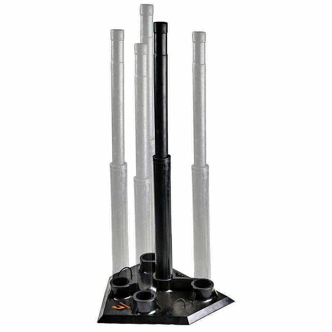 The Tee tubes snap onto the plate, with a built-in handle for easy transport. Just pop the tubes off and slide them into one of the position holes to start training.