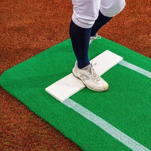 The 10’x3′ mat also protects your turf field from the wear and tear of pitchers. At 55 lbs, the mat is hefty enough to stay where it is put, yet manageable enough to carry on or off the field with ease. This mat is perfect for any game or practice application