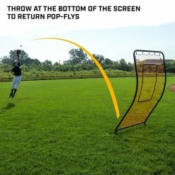 The unique shape of the Infinity Rebound Screen will return ground balls, line drives, and pop-flys without any adjustment. Throw the ball at the top of the screen for ground balls, the center for line drives, and the bottom for pop-flys.
